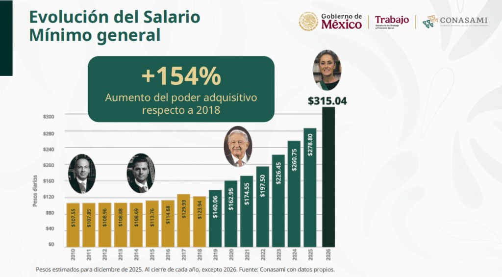 El Gobierno de México confirmó que a partir del 1 de enero de 2026 entrará en vigor un nuevo aumento al salario mínimo, considerado uno de los avances más significativos desde el inicio de la Cuarta Transformación.