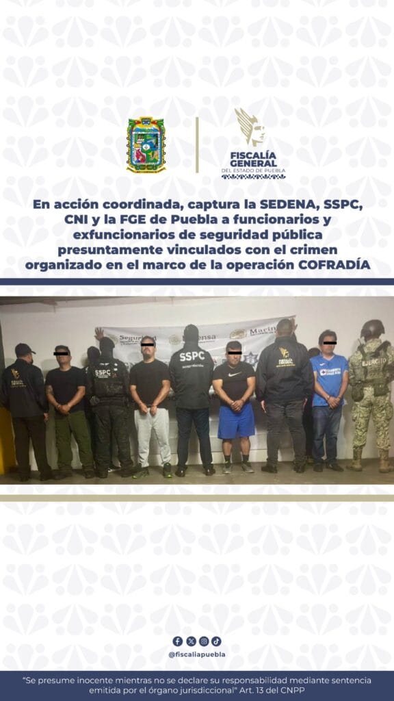 La Secretaría de la Defensa Nacional (SEDENA), la Secretaría de Seguridad y Protección Ciudadana (SSPC), el Centro Nacional de Inteligencia (CNI) y la Fiscalía General del Estado (FGE) de Puebla, desplegaron un operativo estratégico en el marco de la operación COFRADÍA, con el objetivo de desarticular una red criminal que operaba desde dentro de las instituciones de seguridad.