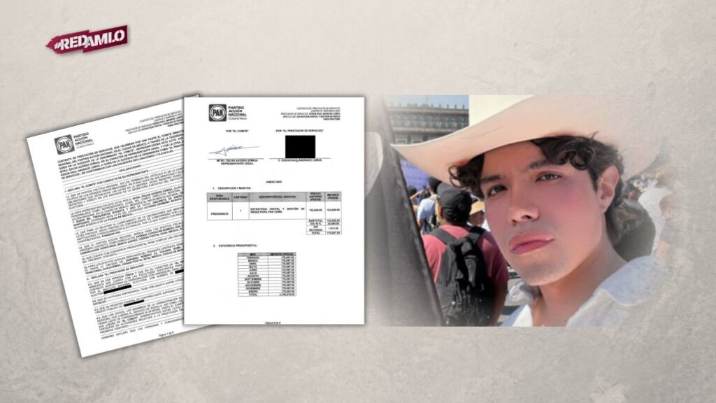 Un contrato interno del Partido Acción Nacional en la Ciudad de México confirma que Edson Saúl Andrade Lemus fue formalmente contratado por el PAN CDMX como prestador de servicios profesionales en estrategia digital y gestión de redes, con un monto total de 2 millones 106 mil 810 pesos IVA incluido.