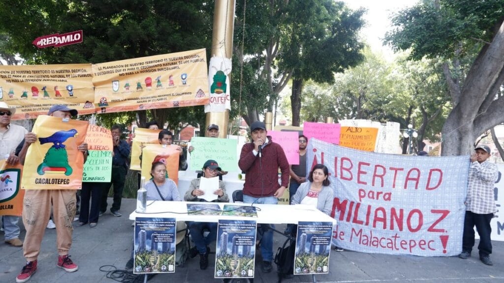 Uno de los temas más controversiales en esta lucha es la detención de Emiliano Zambrano, líder del Campamento de la Resistencia en Defensa de la Tierra y el Agua de Malacatepec, quien fue arrestado en agosto del año pasado, luego de encabezar la resistencia en los terrenos que Grupo Proyecta quiere urbanizar. Los pobladores exigen su liberación y han señalado que su detención es una represalia por su lucha en defensa de la tierra.