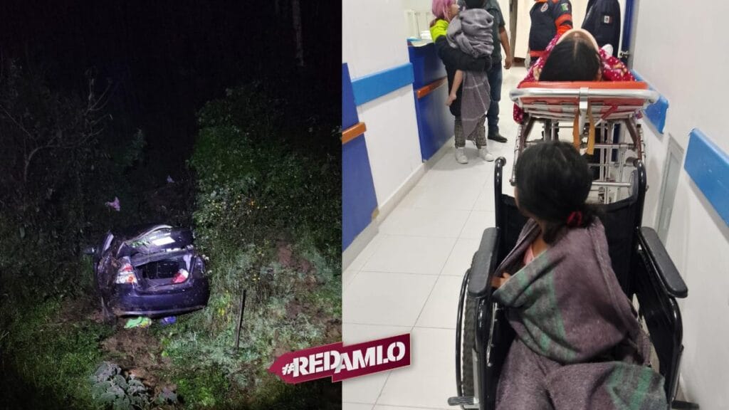 La noche del domingo, una familia sufrió un aparatoso accidente mientras circulaba por el Arco Sur, a la altura de la central de abastos. Las condiciones climáticas adversas provocaron que el conductor perdiera el control de su vehículo, un Aveo color negro con placas YMT058B del estado de Veracruz, volcando varios metros fuera de la carpeta asfáltica.